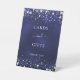 Un panneau cartes et cadeaux pour un anniversaire, mariage, baby shower. Un fond bleu marine avec des étoiles argentées élégantes. La couleur bleue est inégale. Le texte : cartes et cadeaux, merci !