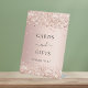 Un fond en or rose faux avec des confettis. Avec le texte : Cartes et Cadeaux. Merci !