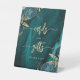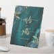 Un panneau chic et élégant pour souhaiter la bienvenue aux invités de votre table de cartes et de cadeaux. Les mots "cartes" et "cadeaux" apparaissent en calligraphie manuscrite de couleur or avec des fioritures au début et à la fin, avec les mots "merci !" en dessous dans une police serif. Le fond présente des bouquets floraux bleus sarcelle mis en valeur avec un feuillage en feuille d'or dans deux coins, sur une image de fond d'agate à l'aquarelle bleue sarcelle. Consultez notre collection pour un ensemble de faire-part de mariage et de papeterie assortis pour le jour J.