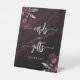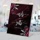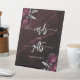 Un panneau élégant pour souhaiter la bienvenue aux invités de votre table Cartes et Cadeaux. Les mots "cartes" et "cadeaux" apparaissent dans une calligraphie grise argentée avec des fioritures au début et à la fin, avec les mots "merci !" en dessous dans une police serif. Une paire de bouquets de fleurs bordeaux rehaussés de feuillage en faux feuilleté argenté apparaissent dans deux coins, sur une image de fond sombre et d'humeur d'agate aquarelle bordeaux. Consultez notre collection pour un ensemble de faire-part de mariage et de papeterie assortis pour le jour J.