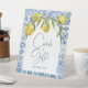 Signe De Table Cartes de tuiles bleues méditerranéennes au citron
