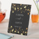 Un fond noir classique décoré d'étoiles dorées. Avec le texte : Cartes et Cadeaux, merci"