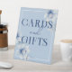 Décorez votre table cadeau avec cette magnifique carte et ce signe de piédestal. Avec de belles fleurs d'aquarelle bleu poussiéreux sur un arrière - plan bleu ardoise. Parfait pour une mariage bleue, un baby shower bleu ou une douche nuptiale bleue !