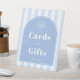 Un panneau de table frais inspiré de la côte qui indique où laisser les cartes et les cadeaux lors de votre événement. Toutes les couleurs (y compris l'arche, le coquillage et tout le texte) peuvent être personnalisées par vos soins, ainsi que toutes les couleurs et positions du texte, à partir de l'outil de conception. Vous pouvez également ajouter ou supprimer des zones de texte à l'intérieur de l'outil de conception.