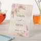 Un fond dégradé rose doré et rose blush rustique. Décoré de fleurs roses et dorées, de roses et d'herbe des pampas. Avec le texte : Cartes et Cadeaux, Merci
