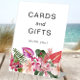 Cartes et Cadeaux Floraux Tropical Signal Piédestal. Gardez les choses organisées et élégantes avec ce panneau de cartes et cadeaux, avec des palmiers et des fleurs d'aquarelle vibrants dans les tons fuchsia, roux et vert luxuriant. Que ce soit à l'entrée ou sur votre table cadeau, il permet aux clients de savoir exactement où laisser leurs jetons réfléchis. Personnalisez le texte et la mise en page en fonction de votre thème tropical. Ajoutez une touche de beauté coordonnée tout en faisant de votre espace un sentiment d'aisance et d'invitation.