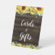 Cette enseigne de mariage de tournesol rustique et de cadeaux est parfaite pour un été ou un mariage de automne. De beaux tournesols jaunes se mêlent aux marguerites blanches et aux fleurs sauvages bleus.