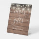 Doté de jolies lampes à cordes sur un arrière - plan rustique en bois, cet élégant panneau de cartes et de cadeaux est parfait pour toutes les célébrations. Conçu par Thisisnotme©