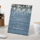 Ce panneau élégant à barre ouverte est parfait pour toutes les célébrations, avec de jolies lampes à cordes sur un arrière - plan en bois bleu rustique. Conçu par Thisisnotme©