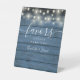 Doté de jolies lampes à cordes sur un arrière - plan de bois rustique bleu, cet élégant panneau de faveurs est parfait pour toutes les célébrations. Conçu par Thisisnotme©