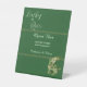 Personnalisez votre douche de mariée avec des panneaux de piédestal personnalisés. Invitez vos invités à une fête de douche de mariée 'Bar ouvert' avec des trèfles chanceux à la veille de la Saint-Patrick. L'illustration comporte "Chanceux en amour" avec des trèfles verts et dorés scintillants, des trèfles à 4 feuilles. Le texte utilise une calligraphie moderne et est facilement personnalisable.