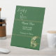 Personnalisez votre douche de mariée avec des panneaux de piédestal personnalisés. Invitez vos invités à une fête de douche de mariée 'Bar ouvert' avec des trèfles chanceux à la veille de la Saint-Patrick. L'illustration comporte "Chanceux en amour" avec des trèfles verts et dorés scintillants, des trèfles à quatre feuilles. Le texte utilise une calligraphie moderne et est facilement personnalisable.