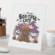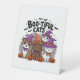 Un groupe de chats ludiques avec des casquettes sorciers appréciant les citrouilles d'Halloween, idéal pour la décoration festive.
