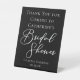 This elegant black bridal shower welcome pedestal sign features beautiful white typography for an evening party in the winter. Minimalist script is a modern trend for a contemporary bride.
