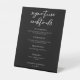 Cette enseigne de guéridon à la signature noire chic présente une tyopgraphie blanche simple de votre liste de boissons et des ingrédients pour votre bar mariage. Un menu de boissons moderne et minimaliste pour une réception à l'ancienne, cosmopolite, moscou mule et margarita. Laissez ou échangez notre pour votre cocktail favori.