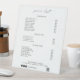 Simple noir et blanc liste de prix d'affaires panneau de piédestal avec "liste de prix" en calligraphie. En bas se trouve le nom de votre entreprise, les coordonnées, les icônes des médias sociaux et le code QR. Un design minimaliste avec typographie chic pour une touche élégante.