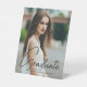 Ce panneau de piédestal chic de fête de graduation présente un script noir écrit à la main sophistiqué sur une photo pleine tendance de votre diplômé. Customisez ce décor moderne et moderne avec votre année et votre nom.