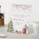 Festive Christmas baby shower “Favors, Please Take One” sign featuring watercolor holiday lights, snowflakes, Santa Claus, Christmas tree, and beautifully wrapped presents. Perfect for decorating your favor table at a Merry Little Baby Shower. Coordinates with matching Christmas baby shower invitations, diaper raffle cards, books for baby cards, table signs, menus, napkins, and more. Ideal for winter and holiday-themed celebrations.
