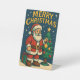 This charming Santa Claus design next to a Christmas tree, in a classic retro style, evokes a warm and festive atmosphere, perfect for the holidays. The vibrant colors and intricate details add a beautiful, celebratory touch to any product, whether for personal use or as a thoughtful gift.