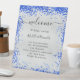 Un faux arrière - plan argenté, décoré de confettis bleu roi, brille. Texte noir. Personnalisez et ajoutez vos noms et le programme de mariage.