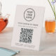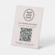 Panneau de socle de table rose moderne et professionnel pour votre entreprise avec votre code QR pour que les clients scannent pour payer, pour voir une liste de vos produits, services et prix, pour des rendez-vous, pour s'inscrire, etc. Téléchargez votre logo et votre code QR et ajoutez le nom de votre entreprise, votre numéro de téléphone, votre adresse ou d'autres informations dans une typographie simple.