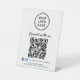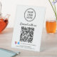 Panneau de piédestal de table moderne "connectez-vous avec nous" pour votre entreprise avec votre code QR pour que les clients scannent pour effectuer un paiement, pour une liste de vos produits, services et prix, pour des rendez-vous, pour s'inscrire, etc. Téléchargez votre logo et votre code QR et ajoutez le nom de votre entreprise, votre numéro de téléphone, votre adresse ou d'autres informations dans une typographie simple. Ajoutez vos identifiants d'utilisateur instagram et facebook pour que les clients vous suivent sur les réseaux sociaux.