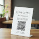 Panneau de tablette pedestal personnalisé chic pour votre entreprise avec votre nom présenté dans un script de signature élégant et le type d'entreprise ci-dessous en lettrage moderne simple. Entrez l'adresse de votre site Web pour créer un code QR que les clients et les clients peuvent rechercher pour les rendez-vous, les produits, les services, les heures, etc.