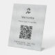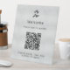 Un arrière - plan classique à l'aspect faux argenté, de couleur noire. Avec le texte : Bienvenue. Personnalisez et ajoutez le logo de votre entreprise, le code QR et le texte.