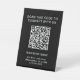 Panneau de table promotionnel noir moderne et simple avec typographie blanche pour votre entreprise ou organisation. Ajoutez votre code QR et deux lignes de texte personnalisé, tels que "scannez pour nous joindre" et le nom, l'adresse et le numéro de téléphone de votre entreprise. Vous pouvez modifier les couleurs de fond et de texte en sélectionnant "personnaliser davantage".