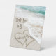 Cœurs de plage dans le sable avec les vagues de l'océan pour les numéros de table.