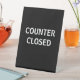 Panneau "Contre Fermé", adapté aux tablettes ou aux comptoirs de caissier dans les magasins de détail, boutiques, kiosques d'artisanat, points de vente, etc.