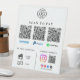 Make checkout simple and professional with this custom business logo QR code scan to pay tabletop sign, designed for modern, cashless businesses. Add your company logo, business name, payment QR code, and custom text, along with social media icons to help customers easily connect with your brand.