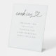 Our cookies acrylic table pedestal display sign features hand lettered typography adorned with a heart for a minimal and elegant way to display food at your wedding reception or event.