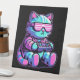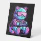 Entrez dans le monde dynamique du jeu avec cette illustration frappante d'un chat rayé bleu et rose, des lunettes de soleil rocailleuses et en tenant un contrôleur de jeu en toute confiance. Cette oeuvre ludique et branchée est parfaite pour les amateurs de jeux et d'arts numériques qui apprécient une touche rétro.