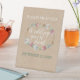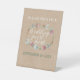 Ce guéridon est parfait pour tout couple qui planifie une célébration romantique de mariage campagnard. Le design de la couronne fleur sauvage sur un arrière - plan à effet kraft peut être personnalisé pour convenir à votre événement spécial et sera le signe parfait pour toute célébration de style country : douches nuptiales, fiançailles, wedding showers, fêtes d'anniversaire et bien plus encore.