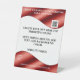 Les bords supérieur et inférieur de ce socle de bureau ont une bannière d'onde rouge marron bordeaux, positionnée sur une couleur arrière - plan de votre choix et des modèles en noir et blanc pour votre formulation personnalisée. Vous pouvez ajouter des photos, des logos, des oeuvres d'art et votre choix de tailles de police, de styles et de couleurs. Déplacez les choses et rendez-les uniques. Disponible en différentes tailles.