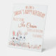 A charming white pedestal sign featuring two adorable bunnies on one side in a sweet pink theme with a clean white background. Soft, lovable, and full of heart, it makes a perfect for babies, kids, moms-to-be, and dear friends' occasions. Customizable with your own special words to create a meaningful and memorable keepsake—ideal for baby showers, birthdays, and special celebrations.