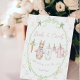 This Books and Cards Pedestal sign features a custom hand-painted frame of a crisp pink ribbon pattern accented with a lush light green ribbon wreath, creating a clean, classic, and welcoming look. A sweet watercolor clothesline is strung across the center, proudly displaying tiny, adorable items, each featuring a cute pink clothed bunny. The scene is completed with cute fresh carrots, and bright, cheerful daffodils, all rendered in a soft watercolor style. Easily add your own details and change the font style, size color and placement if you would like to.