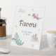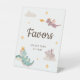 Cute pastel birthday party favor table sign featuring playful dragon, star and cloud illustrations paired with fun, stylish typography on different color backgrounds. You can find more matching items from this collection in my store.
