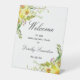 Bienvenue à votre 100ème anniversaire avec cet élégant panneau de bienvenue jaune jonquille. Un luxuriant arrangement de fleurs bleues est placé au sommet. L'accueil est écrit dans une grande police tendance. Le reste du texte est une combinaison classique d'une police droite et d'une police italique. Très facile à customiser. Ce panneau est facile à utiliser et peut être placé dans une variété d'emplacements.