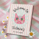 Cute Daisy kitty chat Affiche de bienvenue. Il présente un art folklorique hippy inspiré chat rose la marguerite bleu pâle avec arrière - plan rayé. Toute la formulation peut être modifiée ! Pour apporter d'autres modifications, accédez à Personnaliser ce modèle. En bas, vous verrez "Vous voulez customiser encore plus ce design ? Cliquez sur EDIT à l'aide de l'outil Design. De là, vous pouvez changer certaines polices et certaines couleurs, déplacer les choses ou supprimer ce dont vous avez besoin.#zazzlemade
