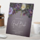 Introducing our exquisite wedding guest book pedestal sign that effortlessly marries modern elegance with vintage allure. Set against a moody purple plum background, a soft side loose bouquet comes to life, featuring dark purple, lavender, cream white, and burgundy flowers alongside delicate botanical greenery. This arrangement is elegantly nestled within a soft white blur oval, creating a design that captures the essence of romance in its purest form. Prepare to captivate your guests with a design that speaks volumes of your love story's depth and sophistication. The blend of colors symbolizes the richness of your journey together, while the vintage feel adds a touch of nostalgia to the contemporary design. Created by Simply Farmhouse Press.