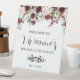 De beaux roses créent un magnifique panneau de douche nuptiale signe de bienvenue. Un magnifique mélange de roses rouges et roses rousses, de vignes assorties et de feuilles en font un design floral très moderne. Il a un peu l'air de Boho Chic, à cause des vignes pendantes et des feuilles.