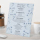 Immergez-vous dans l'élégance et fêtez dans le style grâce à notre magnifique panneau de menu mariage. Ce magnifique panneau présente de délicates fleurs bleues foncées sur un arrière - plan bleu clair, dégageant un air de sophistication et de charme. Informez vos invités de l'éventail alléchant de délicieux délices qui les attendent avec cette belle enseigne, préparant le terrain pour un événement mémorable et délicieux. Elevez votre réunion de jour de mariage avec cette magnifique signalisation, servant d'introduction parfaite à vos délices culinaires spéciaux.