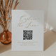 Cet or délicat capte l'amour code QR mariage de guéridon est parfait pour un mariage moderne. Le design minimaliste romantique présente une belle et élégante typographie de champagne jaune doré sur un arrière - plan blanc au look épuré et simple.
