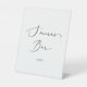 Ce délicat panneau de piédestal de mariage de calligraphie noire est parfait pour un mariage moderne. Le design minimaliste romantique présente une belle et élégante typographie noire sur un arrière - plan blanc au look épuré et sobre.