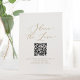 Cet or délicat partage l'amour QR code mariage de guéridon est parfait pour un mariage moderne. Le design minimaliste romantique présente une belle et élégante typographie de champagne jaune doré sur un arrière - plan blanc au look épuré et simple.