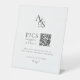 Des photos arrivent - ou pas ! Ne manquez pas les photos de vos invités et donnez-leur l'occasion de partager leurs photos avec vous. Élégant, Classique, Monogramme, Blanc, Galerie Photo-Site Web, QR-Code, Monogramme, Mariage, Panneau de piédestal. Personnalisé avec vos monogrammes, photo-gallery-site, code QR scannable et message pour tenir vos amis et votre famille à jour sur votre prochaine journée spéciale. Personnalisez-le pour qu'il corresponde à votre style mariage unique, du texte aux polices, en passant par les couleurs de police et les teintes arrière - plans.