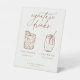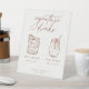 Boissons de signature minimalistes modernes, signe mariage. Caractéristiques, Orange Crush et White Sangria Cocktail Illustrations. Style design typographique tendance modèle en texte de sienne brûlé sur arrière - plan beige sablonneux.