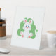 Un lapin caricaturé blanc tape-à-l'oeil assis avec un arrière - plan en splash.